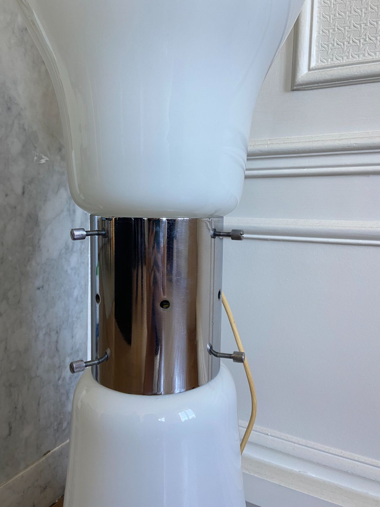 Lampadaire en verre et métal chromé.