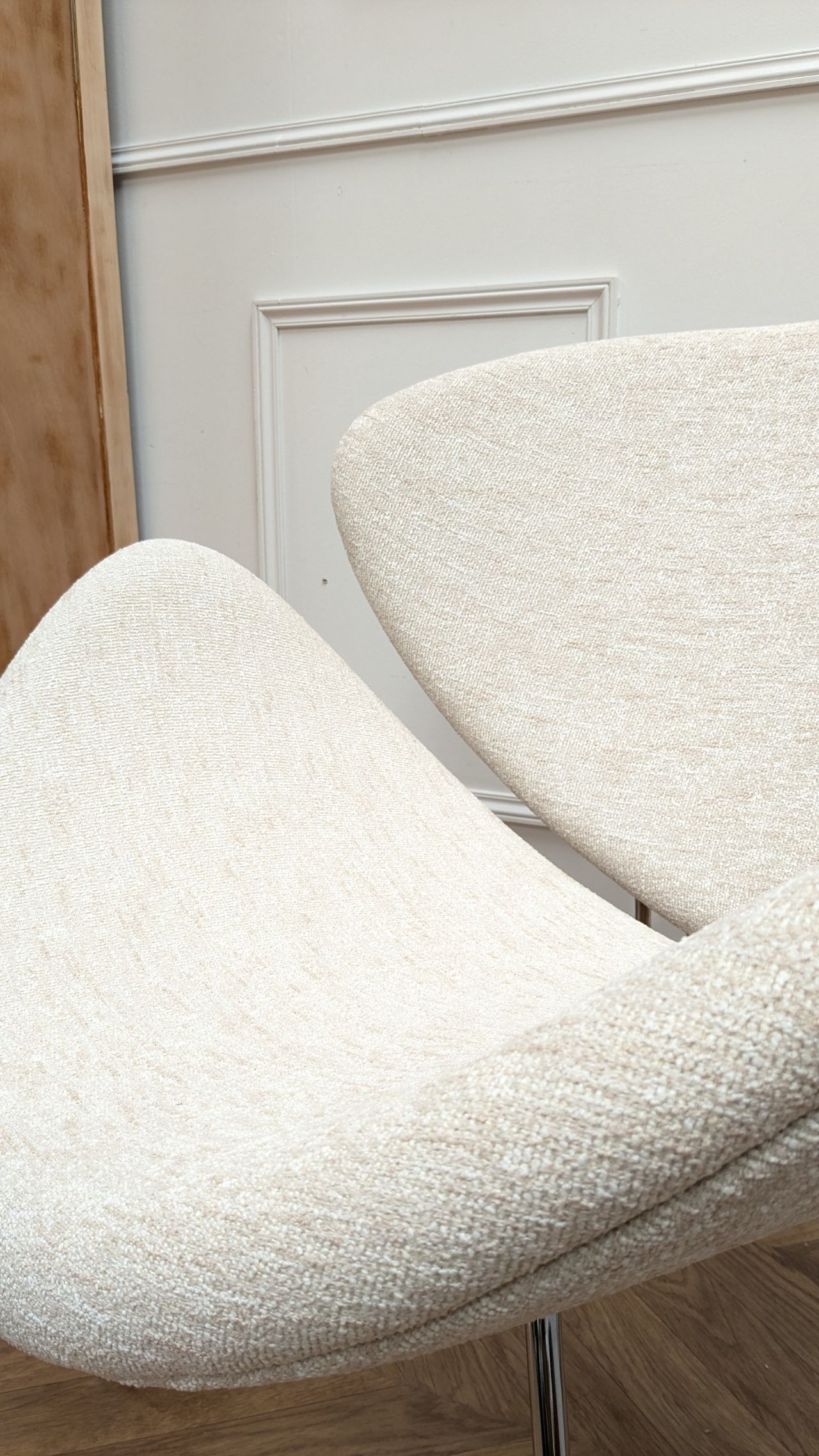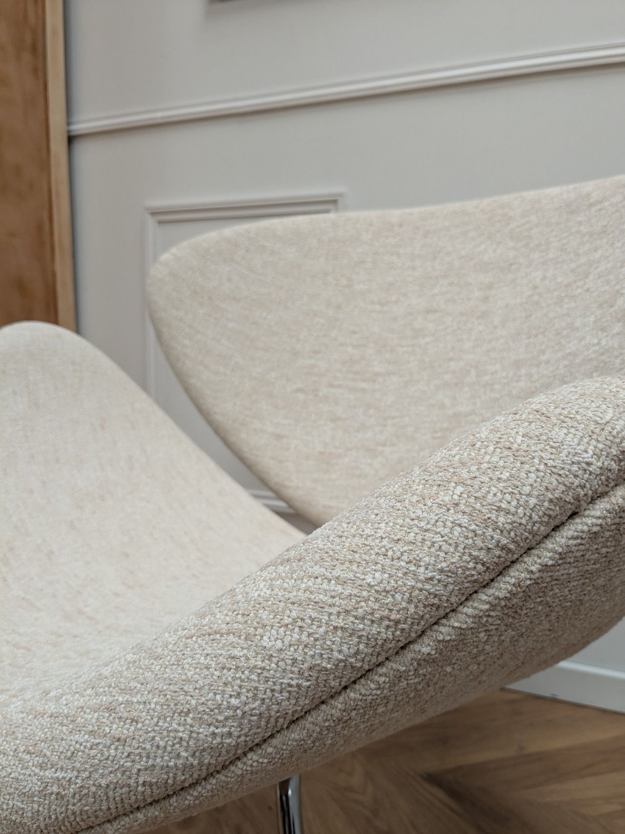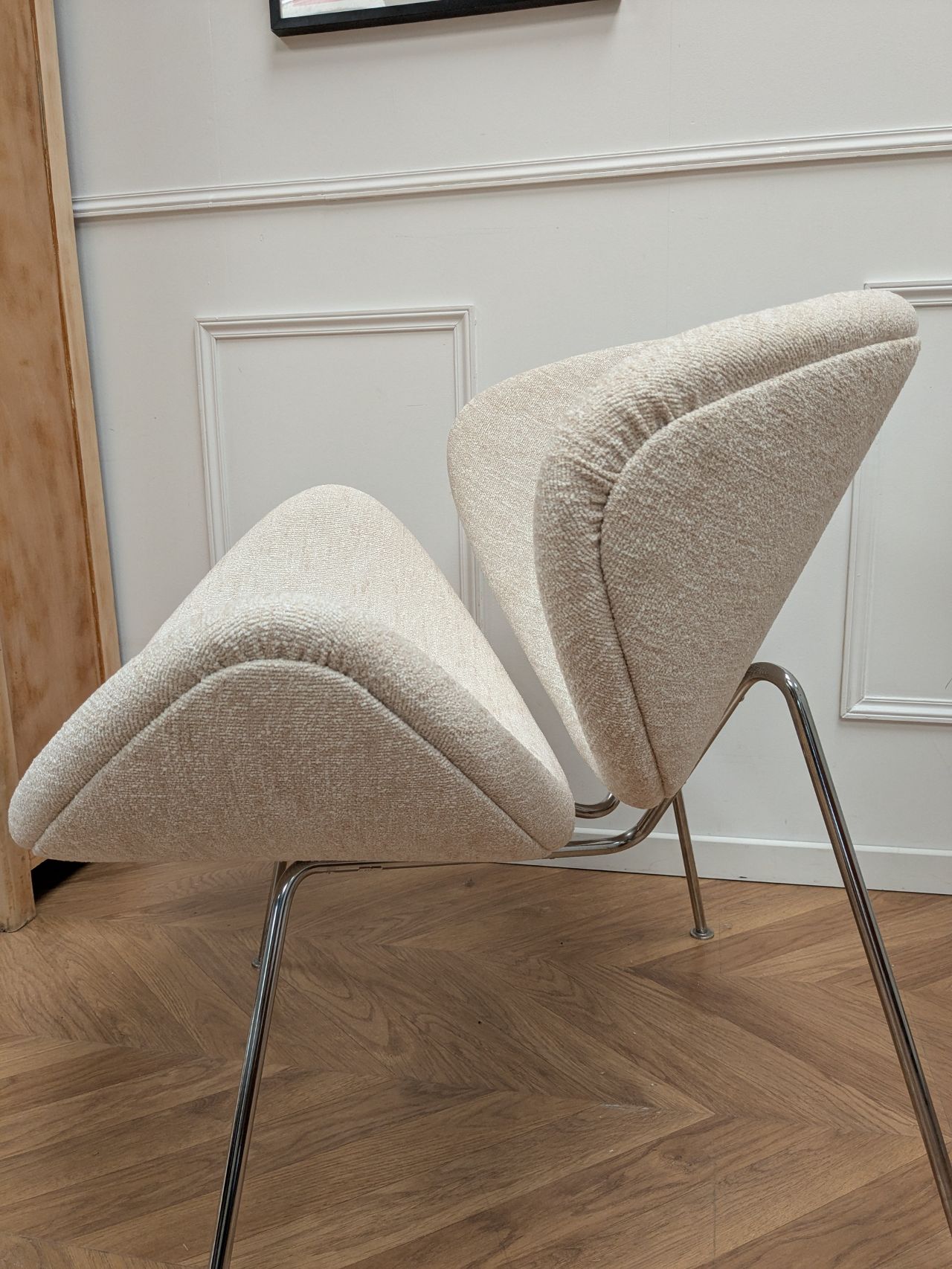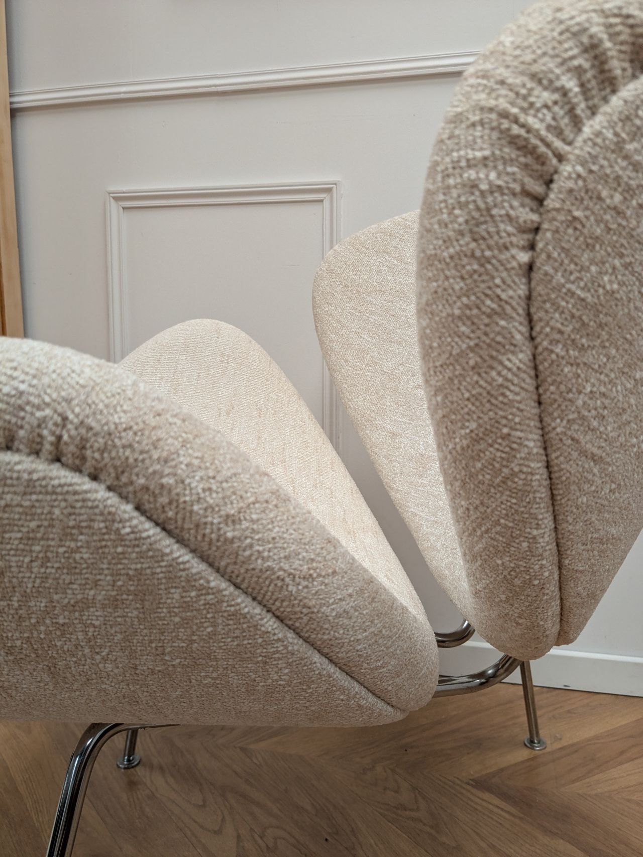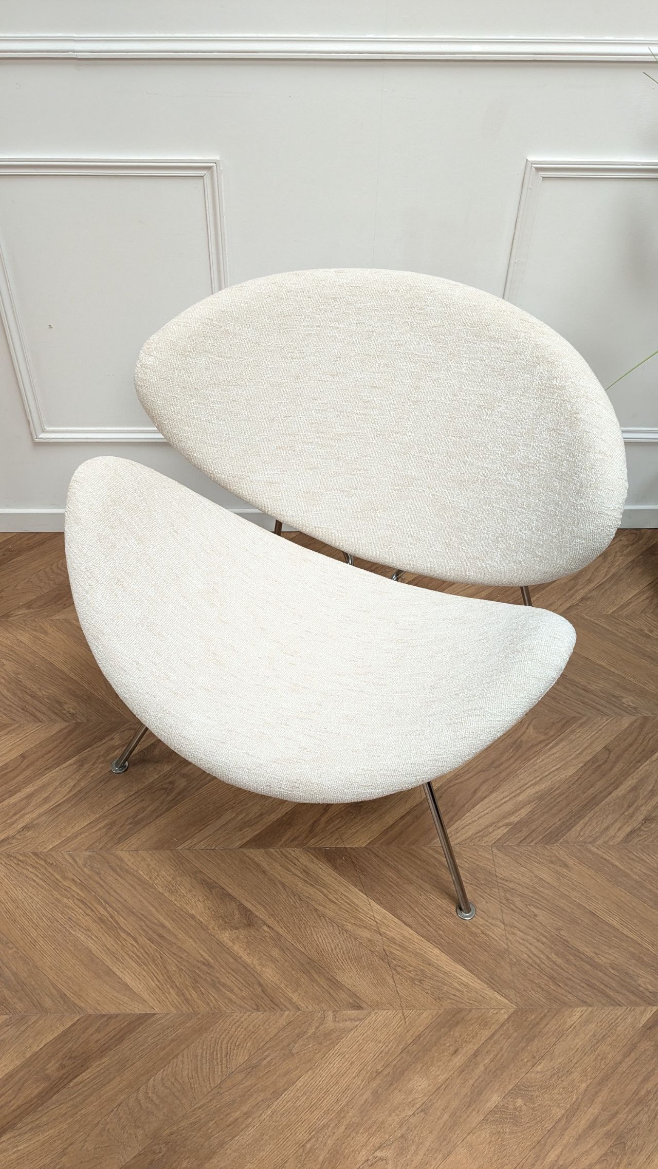 Le fauteuil Orange Slice, conçu par Pierre Paulin en 1957, est une pièce emblématique du design français. Édité par Artifort, ce modèle se distingue par sa structure interne en hêtre pressé, enveloppée dans une mousse moulée.