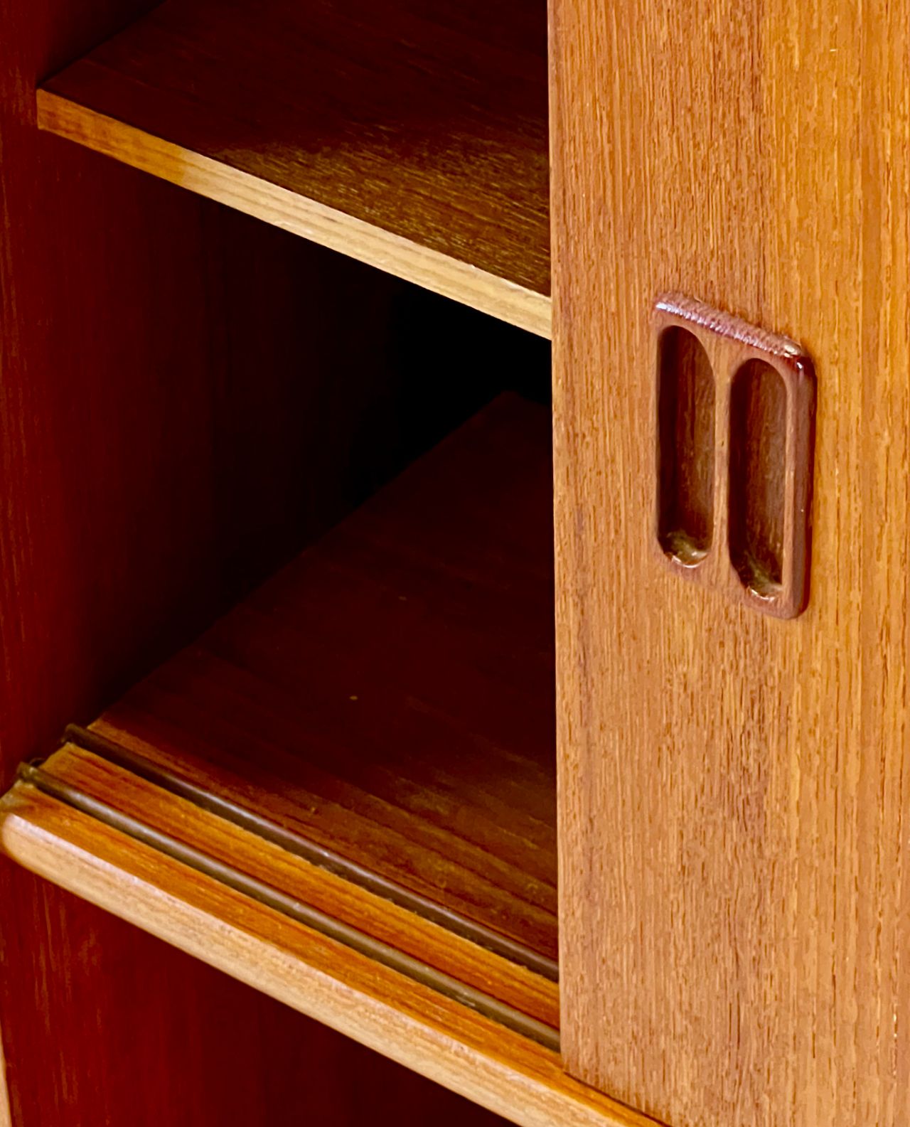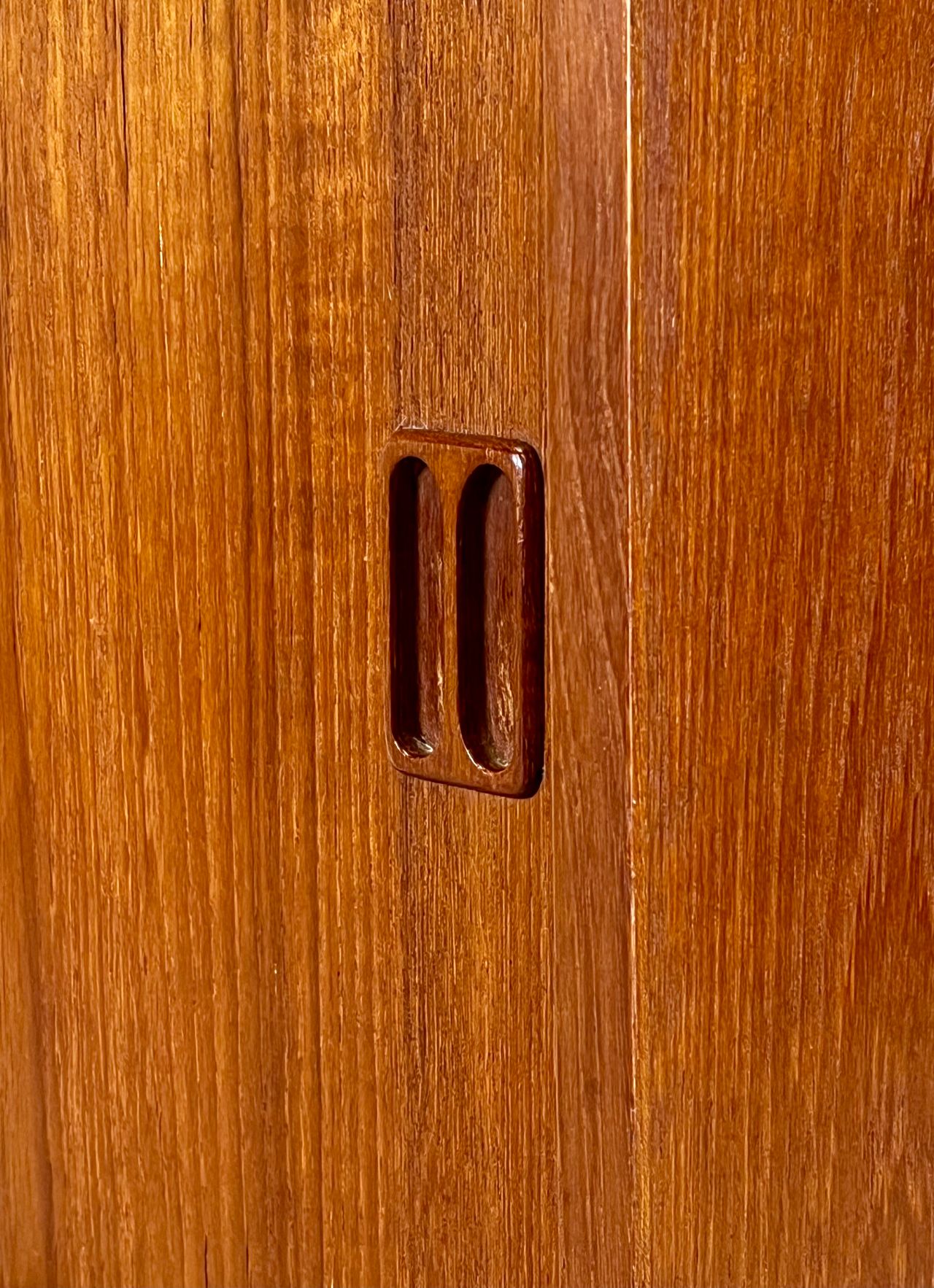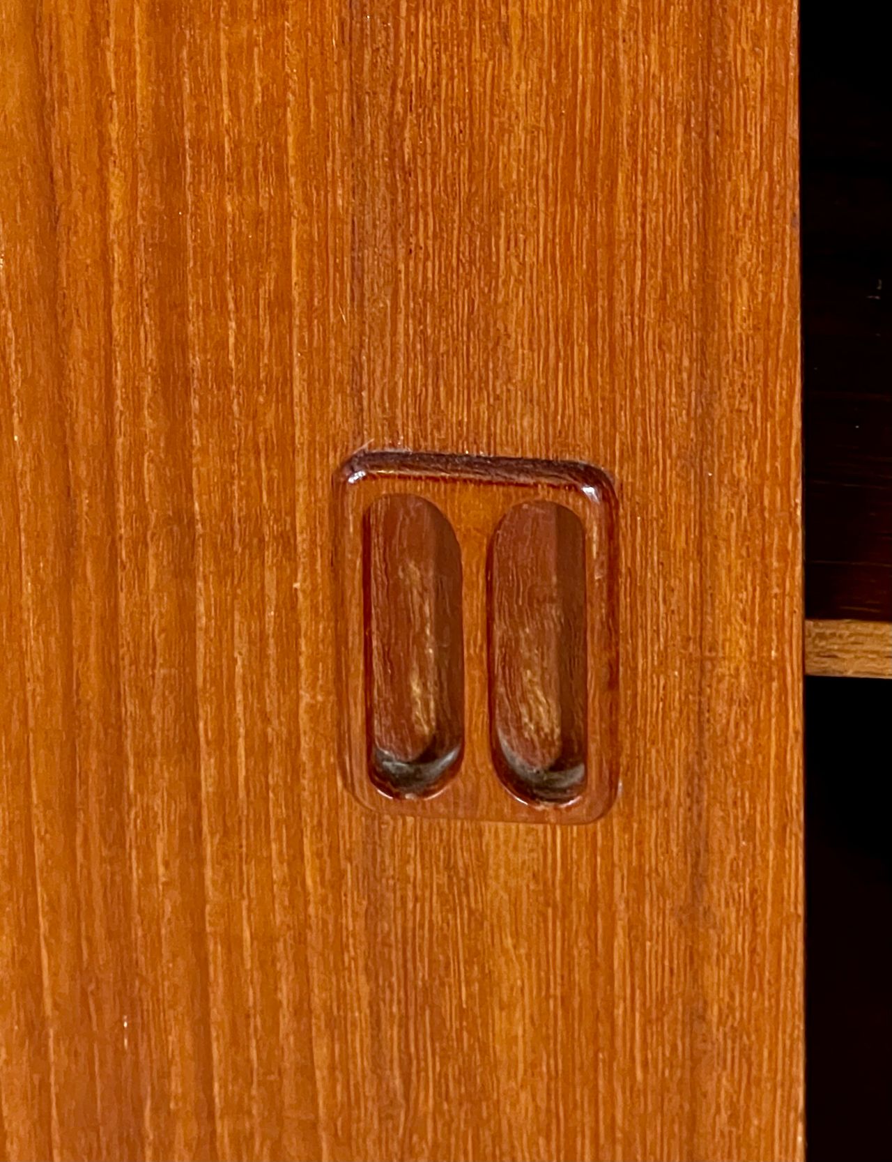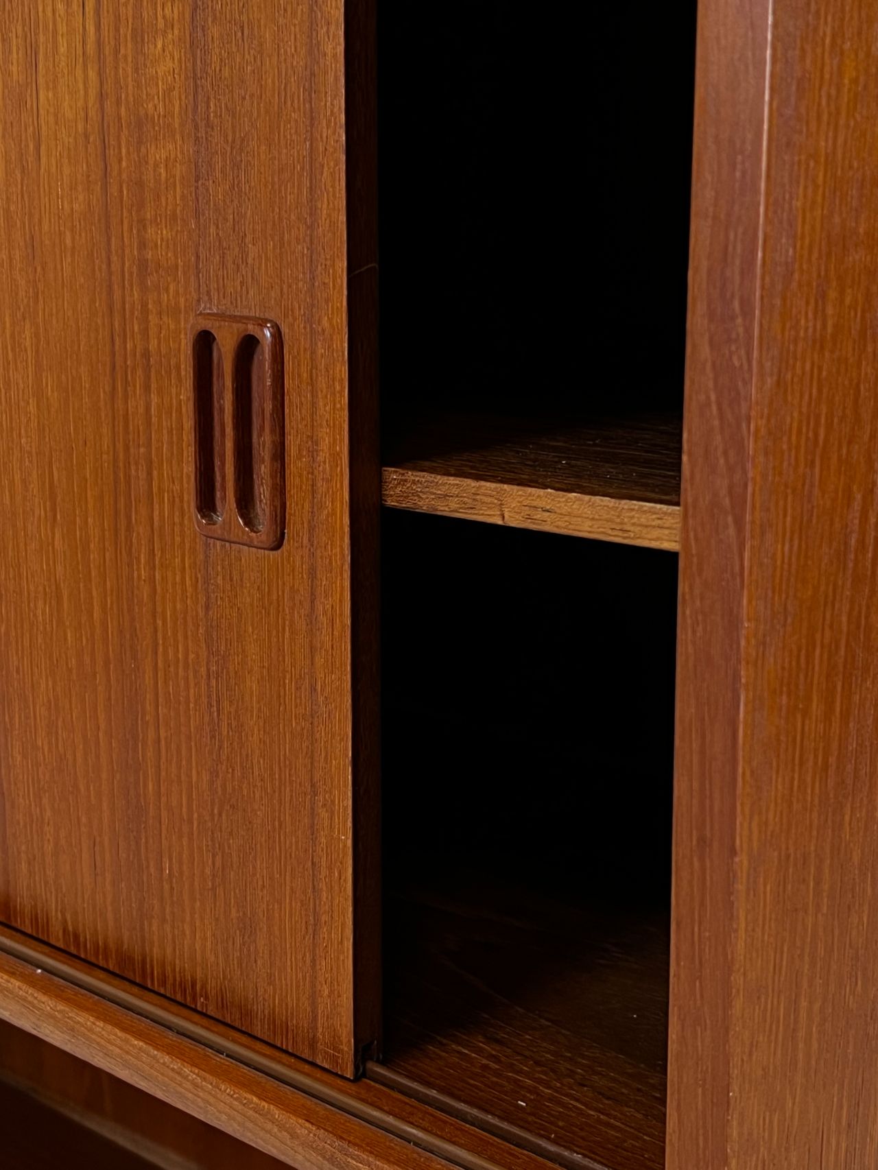 Petit buffet scandinave en teck des années 1960/70. Ouvrant avec deux portes coulissantes et deux niches.