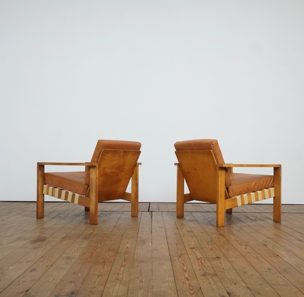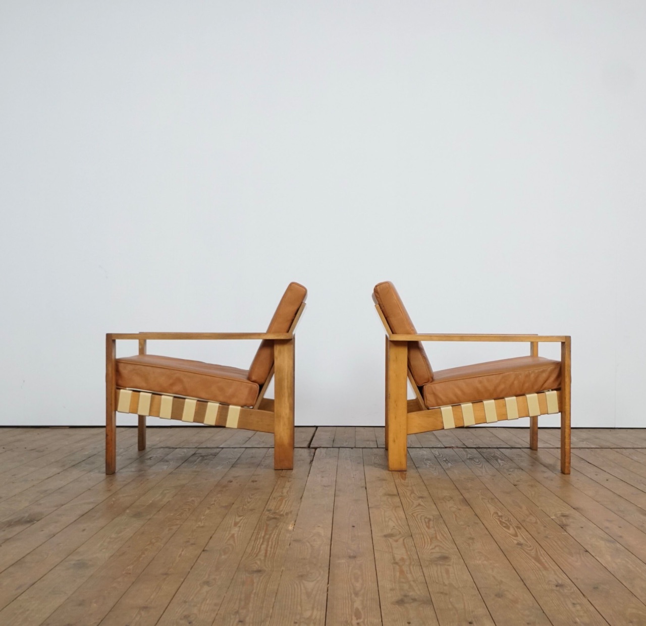 Set of two Modernist leather lounge chairs by Roland Gibbard UK