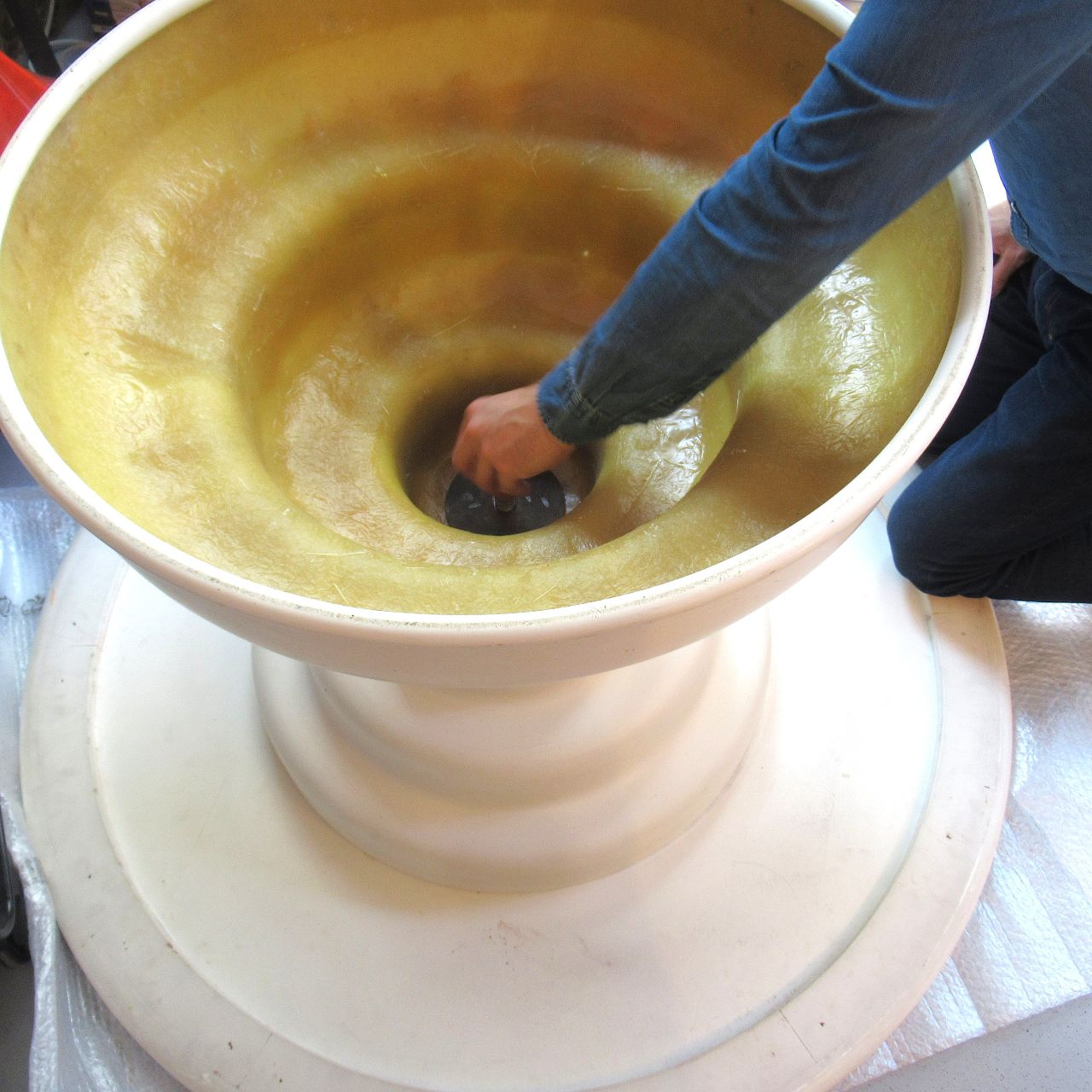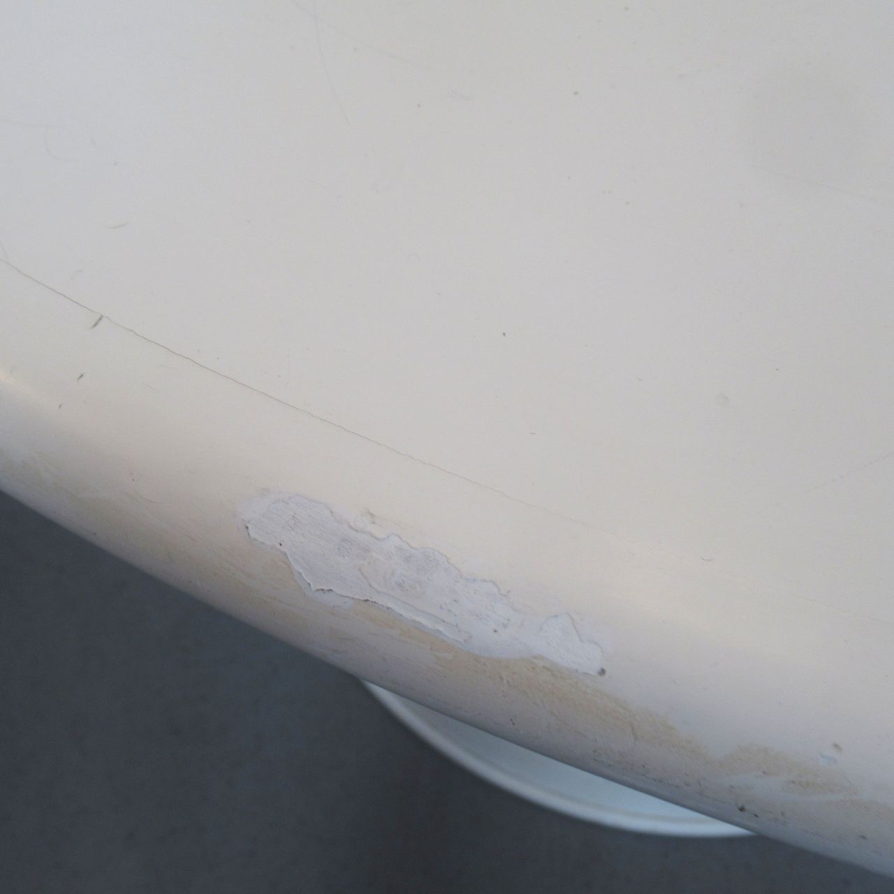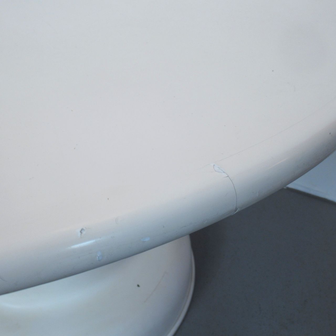 Matériaux : Pied Résine de polyuréthane renforcée de fibre de verre laquée blanc, plateau rond en bois laqué blanc