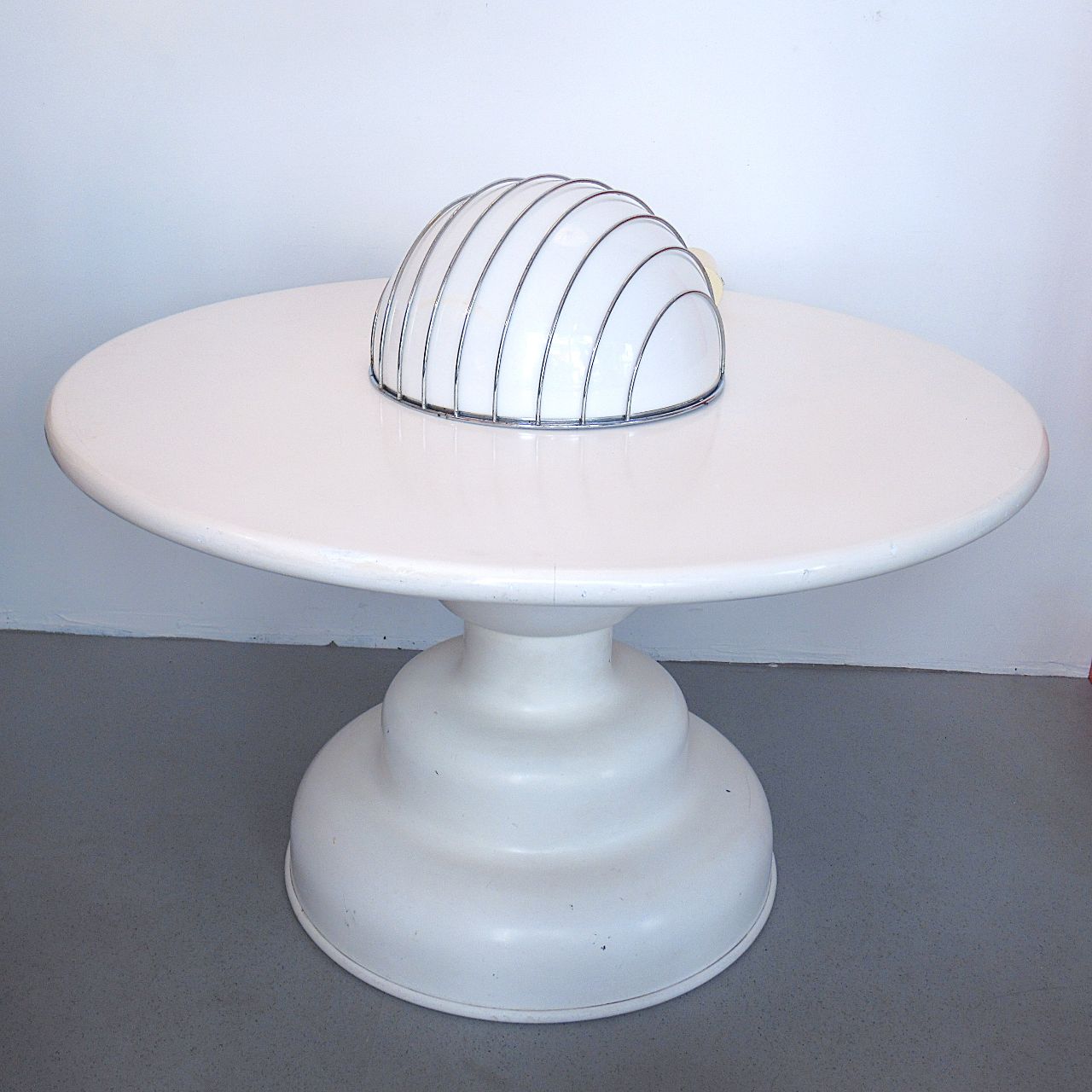 Table de salle à manger ronde blanche à pied central en fibre de verre