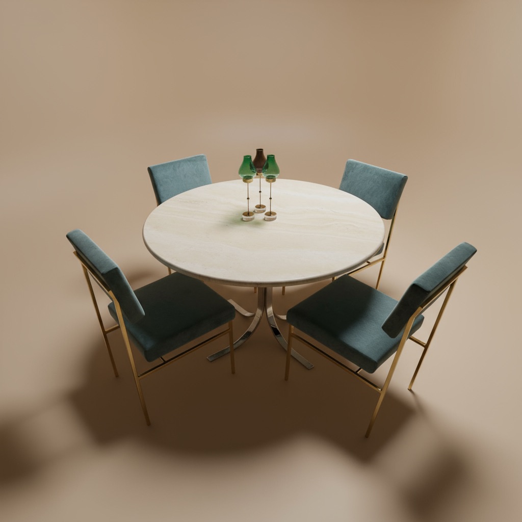 Table en travertin , pied chromés , italien année 80
